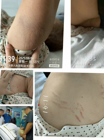 其四,2025年7月18日,拉绳晾衣过不去。刚好邻居串门帮忙弄开,进去20分钟左右出来时,又晾衣服两道,让村委会解决无果。后来上访解决,下来回复单,我说绳解掉就签字,就没事了。8月2日村委会把绳解掉之后我签的字,8月3日就把我和13岁孙女打了。