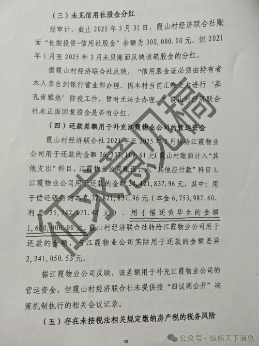 4、据湛泰[2025]审计报告显示,2021年至2025年3月,村委会干部用村集体资金偿还黄华生借款160万元的事实,真相不明。